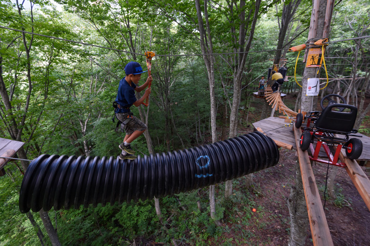 - 一発目のアイテムはいきなりターザンロープのZIPライン! 両手を話してバンザイしても大丈夫!! 各アイテムを1つずつ落ち着いてクリアしよう!