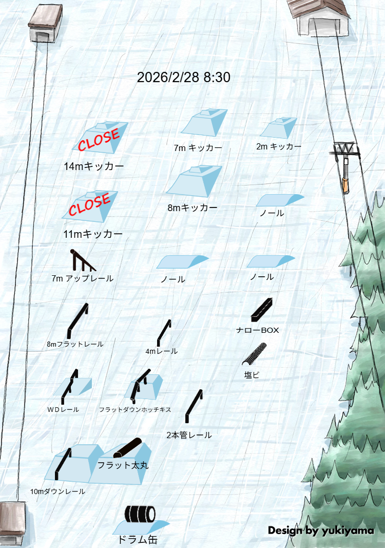 4. スキー場のゲレンデ内・コース内でその一部を許可なく独占・占有しないでください。(無許可のエア台・キッカー・モーグルラインの作成、ポールの設置等)
